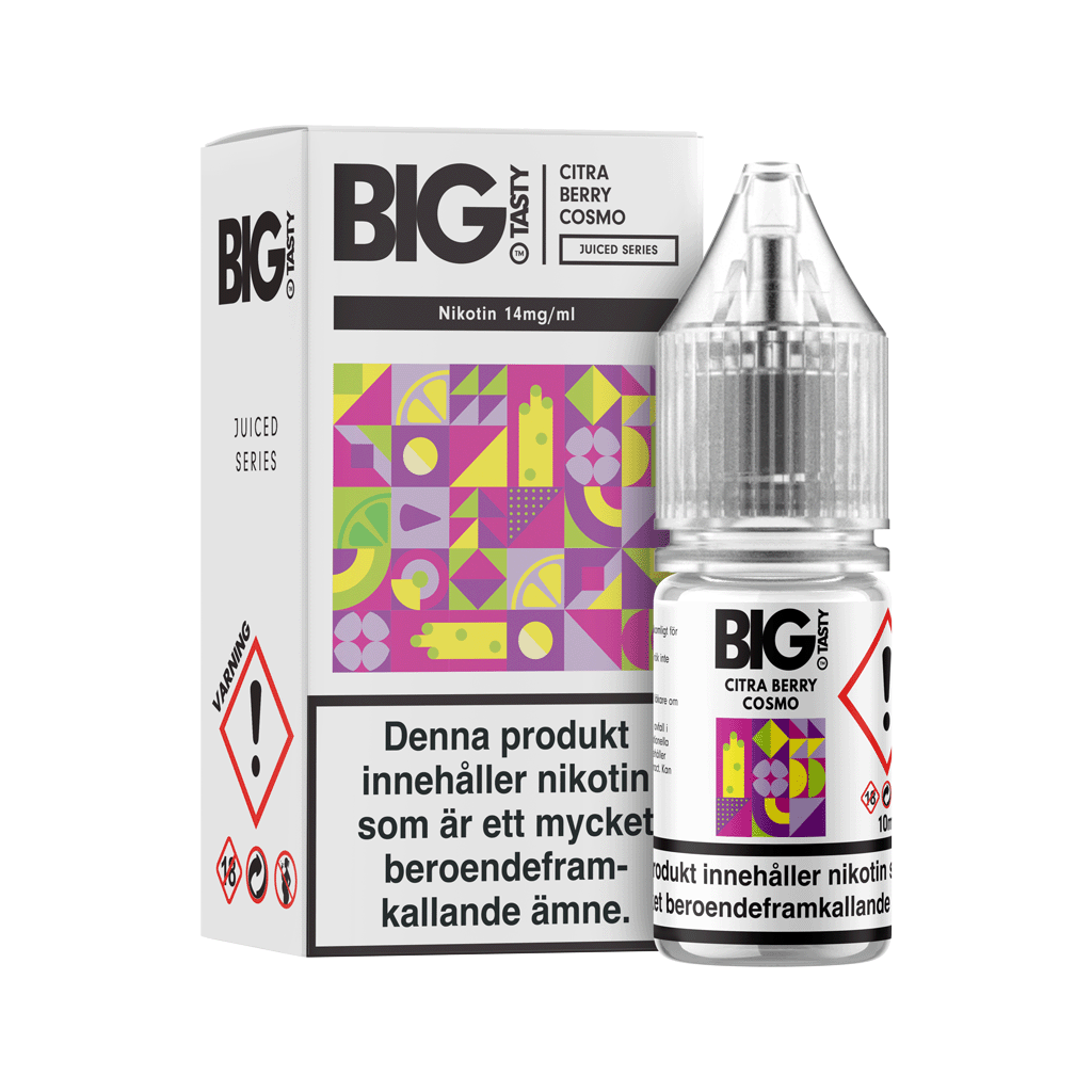 Citra Berry Cosmo från Big Tasty Juiced Series är en fräsch och livlig smakmix som kombinerar citrusens syrlighet med sötman från röda bär. Resultatet är en ren och energisk smakprofil med både djup, fruktighet och en uppiggande citruskick — perfekt för dig som vill ha en fruktig vape med frisk och modern karaktär.