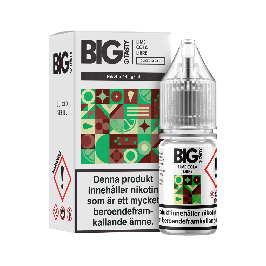 Lime Cola Libre från Big Tasty Juiced Series bjuder på en uppfriskande twist där den klassiska colasmaken lyfts av skarp och fräsch lime. Resultatet är en läskande, livlig och lätt syrlig vape med perfekt balans mellan sötma, citrus och den kända colaprofilen.